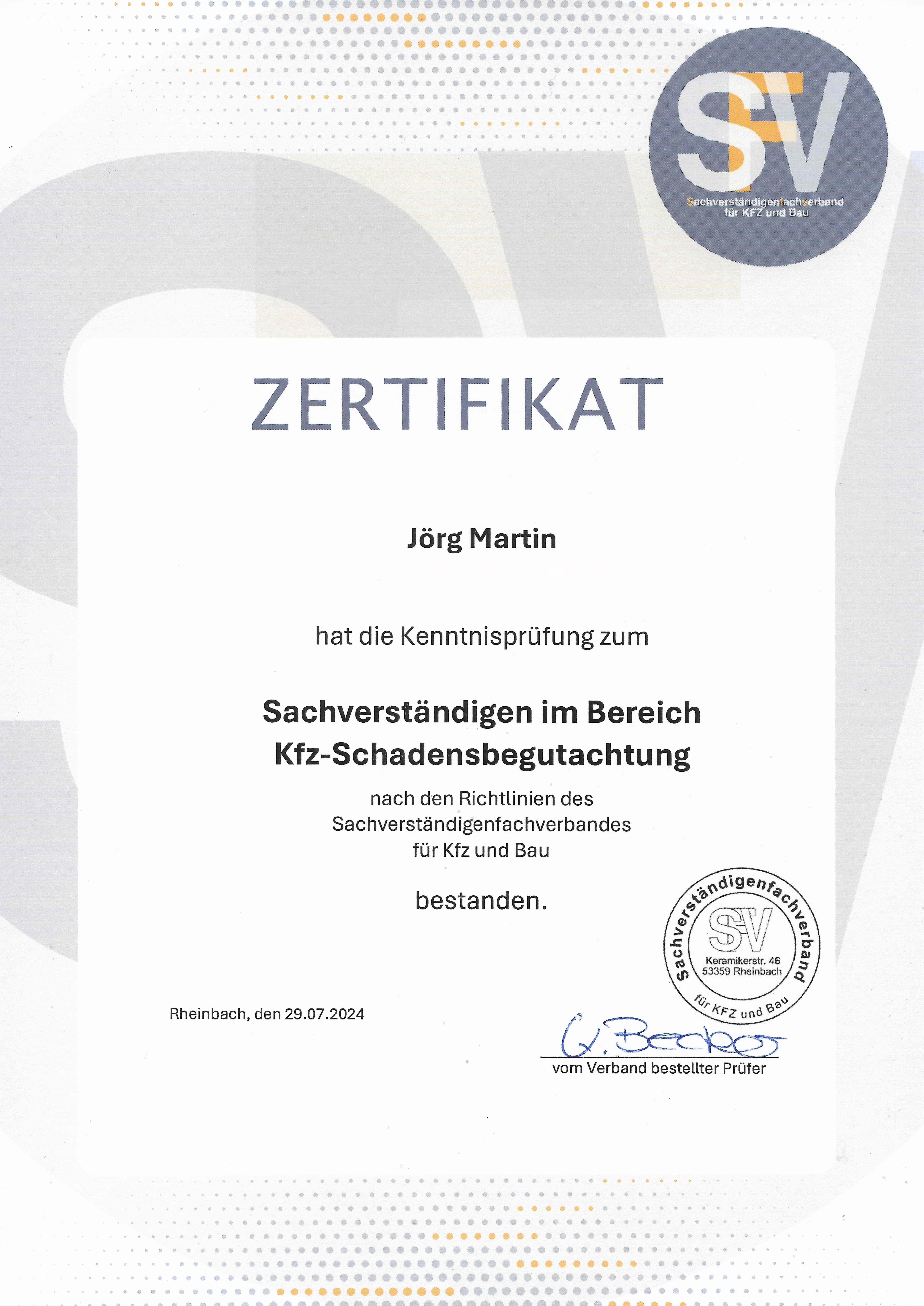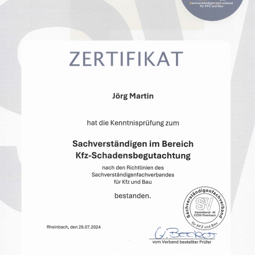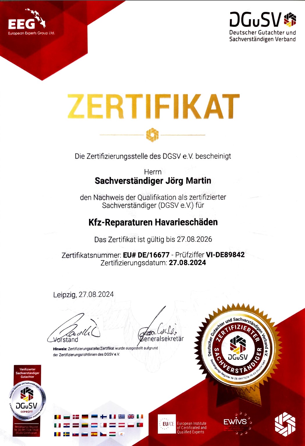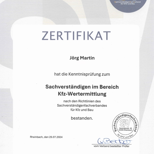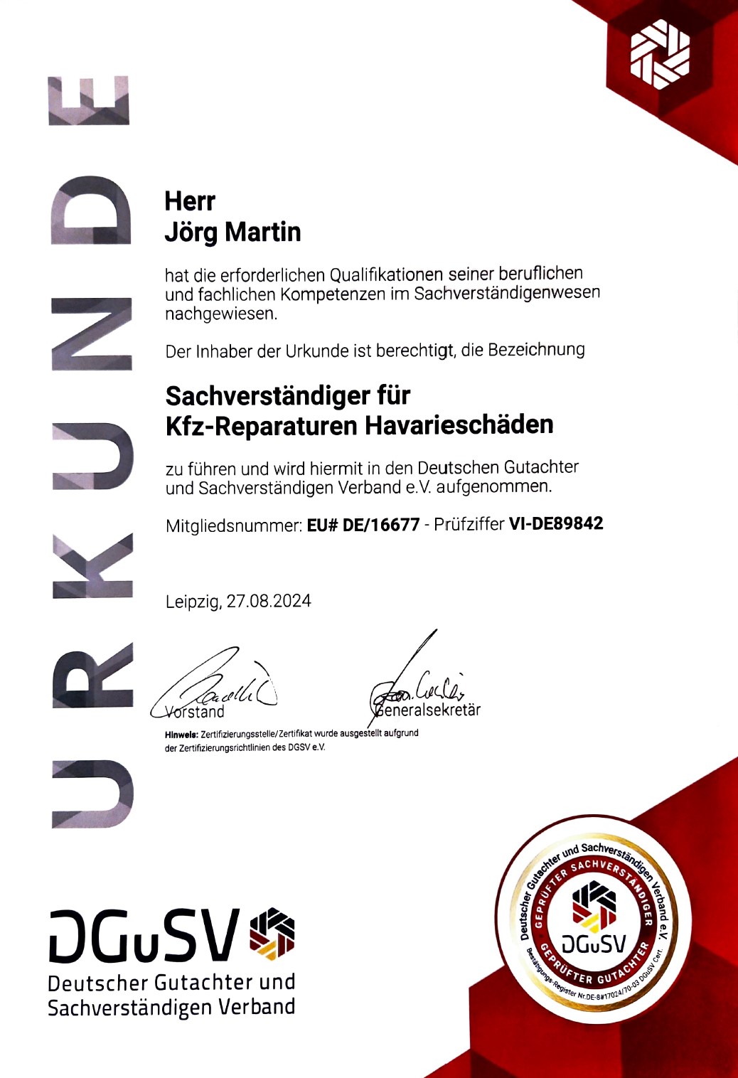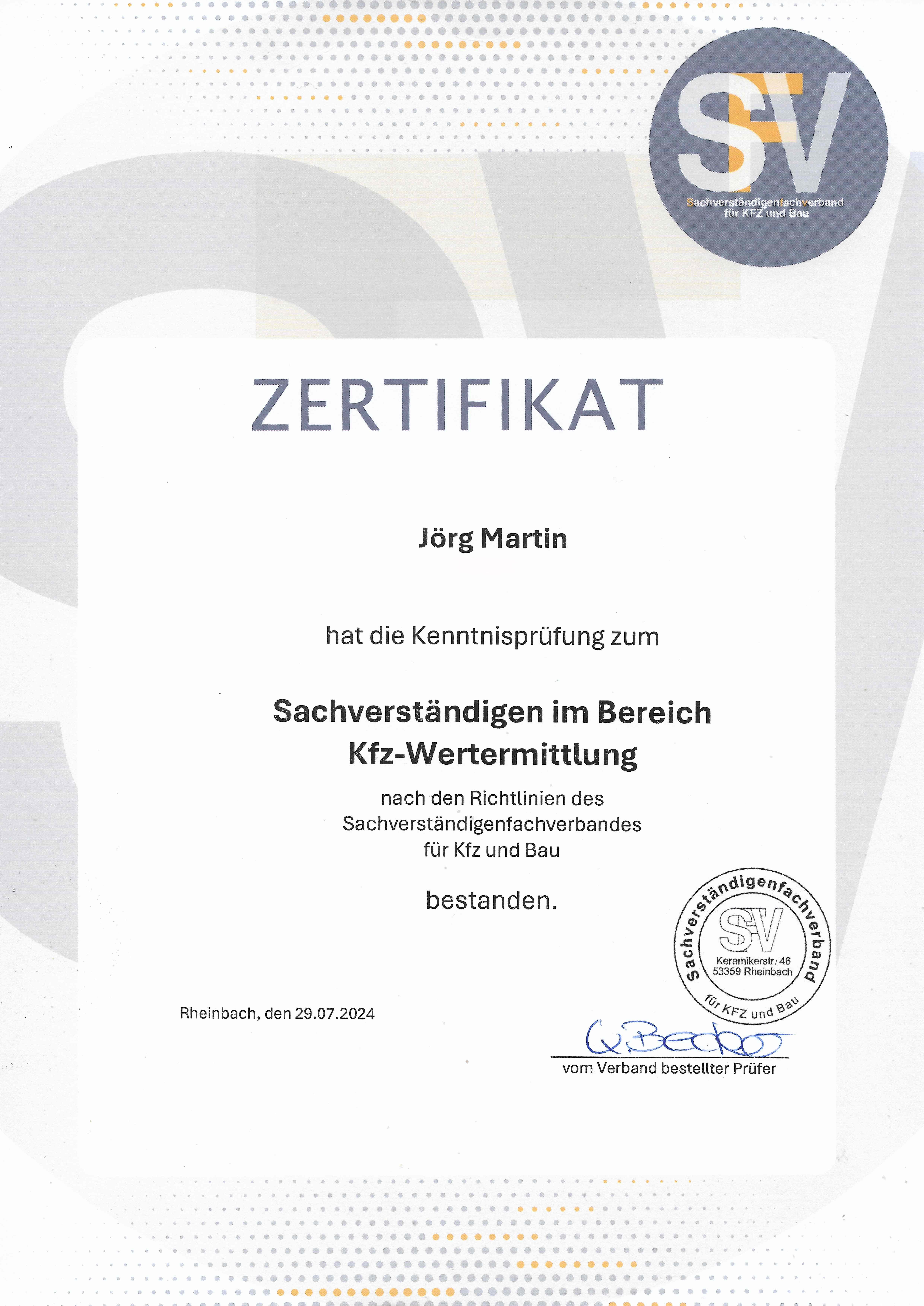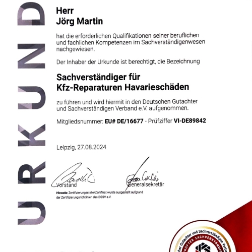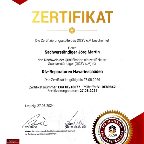- Verbandsgeprüfter- & zertifizierter KFZ-Sachverständiger